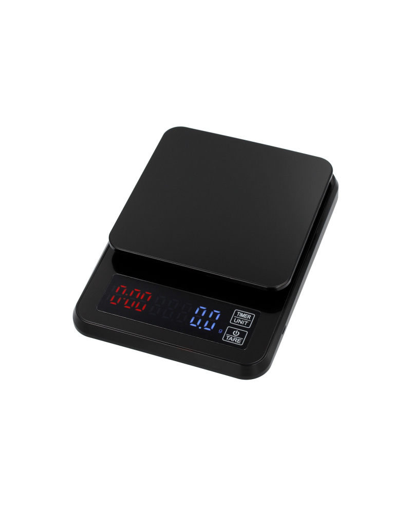 The device offers a wide range of work and precision, you can weigh up to 3 kilograms with an accuracy of 0.1 gram. The built-in timer will allow you to control the time regardless of the coffee brewing method you choose. A large platform (13.5 cm x 14.5 cm) will fit either a portafilter or pour-over accessories.