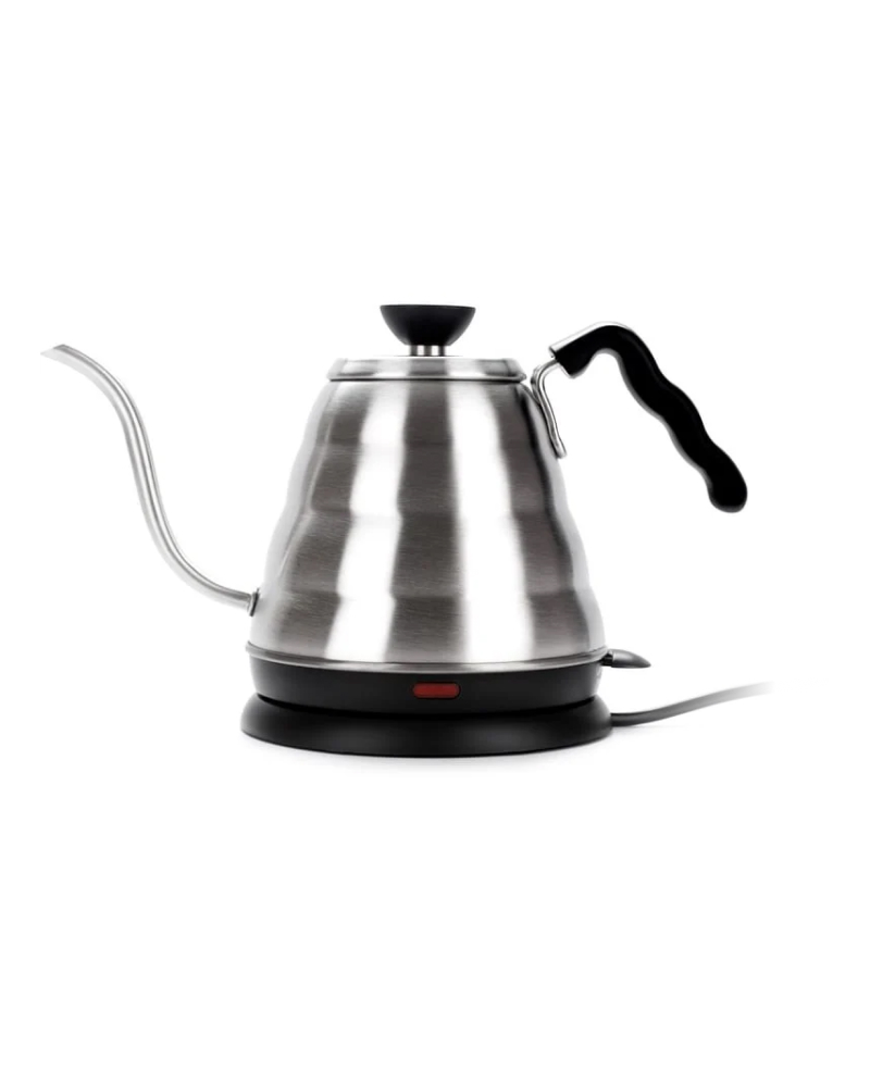 Electric is a wireless electric kettle which, thanks to its profiled spout, provides full control of pouring, so you have influence on the pace and direction of water stream. Its minimalist and industrial design along with pouring precision make Buono Kettle definitely stand out from other kettles. Additionally, Buono Electric Kettle has a safety feature that prevents dry run. Its body is made of stainless steel with plastic elements. Excess cable can be rolled up and stored in the base. Total capacity: 0,8L The above video demonstrates the use of Hario Buono Kettle along with Chemex: